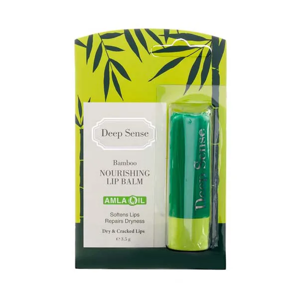بالم لب دیپ سنس Bamboo از دسته لوازم برای آرایش لب محسوب می شود و حاوی ویتامین های E ،A و B5، روغن آملا، موم زنبور عسل و عصاره بامبو است. این محصول خشکی و ترک لب را برطرف کرده و سبب تغذیه و تقویت پوست آن می شود. محافظت از پوست لب، رفع احساس کشیدگی و نرم کردن آن از دیگر ویژگی های مثبت این بالم لب به شمار می آید.