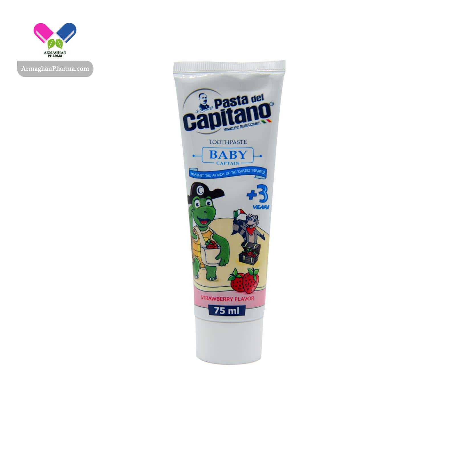 خمیر دندان کودکان کاپیتانو (با طعم توت فرنگی)، یکی از محصولات بهداشتی و مراقبتی دارای طعم توت فرنگی ملایم برای دندان بوده که از فرمولاسیون ویژه ای ساخته شده است. این محصول به دلیل داشتن عناصر ضدحساسیت، علاوه بر سفید کردن دندان ها، از بروز حساسیت در آن ها جلوگیری کرده و در نهایت هم به ایجاد لبخندی زیبا کمک می کند. همچنین این خمیردندان به واسطه داشتن ترکیبات بی نظیر از پوسیدگی دندان جلوگیری خواهدکرد.