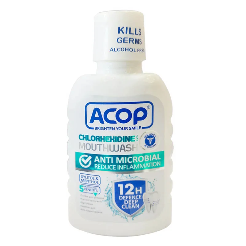 دهانشویه کلرهگزیدین آکوپ، بوی بد دهان را رفع می کند، سبب کاهش پلاک دندان وپیشگیری از مشکلات لثه و ارتقاء سلامتی آن می شود.همچنین باکتری های تولید پلاک را از بین می برد.