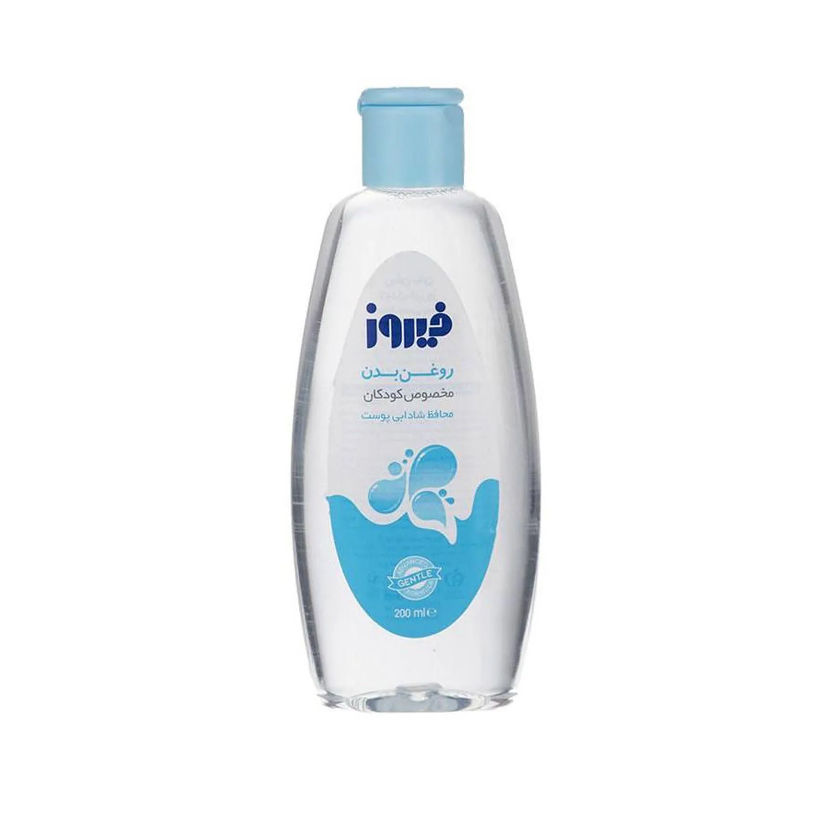 پوست نوزادان و کودکان هم مانند افراد بزرگسال نیازمند مراقبت است چرا که آنها هم مانند والدین خود در معرض آلودگیهای محیط هستند و حتی به خاطر داشتن پوست حساستر باید توجه بیشتری به پوست آنها شود. پوست کودکان به دلیل کمتر داشتن فیبرهای کلاژن و الاستین مقاومت و انعطاف پذیری کمتری دارد. با هر بار شستشوی پوست کودک حتی با محصولات ویژهی کودکان، پوست رطوبت خود را از دست میدهد و باید برای تغذیهی آن از محصولات مرطوب کننده و نرم کننده استفاده کرد. روغن بدن فیروز دارای مواد نرم کننده و مرطوب کننده است که باعث برطرف کردن التهاب پوست میشود. این روغن خاصیت جایگزینی چربیهای از دست رفته پوست را دارد و فاقد هرگونه مواد حساسیت زا، ترکیبات رنگی و مواد نگهدارنده است. روغن فیروز را میتوان برای ماساژ بدن کودک و بزرگسالان و یا زمان حمام آفتاب بر روی پوست استفاده کرد تا پوست صدمه نبیند و چربی آن حفظ شود. ساختار اسپری بودن این روغن استفاده از آن را راحتتر کرده است. روغن بدن شاداب کننده فیروز در حجم 200 میلی لیتر و بدون رنگ عرضه شده است.