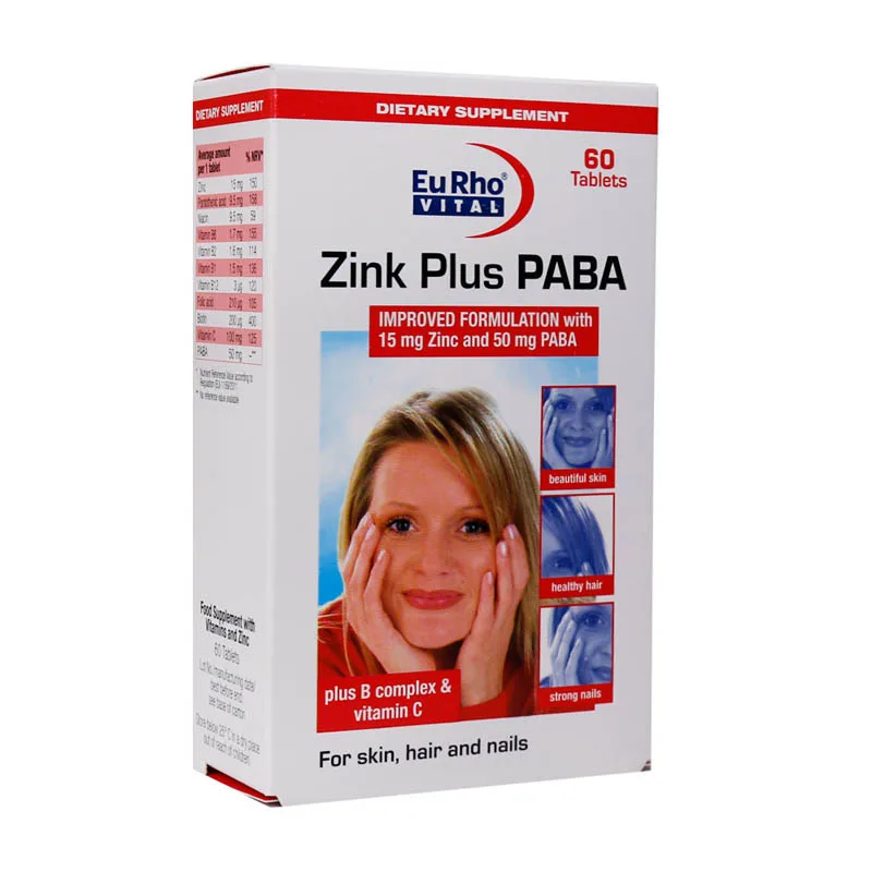 زینک پلاس پابا یوروویتال یک مکمل تخصصی برای تقویت پوست، مو و ناخن است که از ماده معدنی روی، ویتامین C به اضافه پابا و دوز بالای ویتامین های ب کمپلکس تشکیل شده است. ترکیبات موجود در زینک پلاس پابا، برای جلوگیری از ریزش مو، نازک شدن مو و سفید شدن مو مفید هستند. علاوه بر این، با مصرف کپسول زینک پلاس پابا، استحکام بافت ناخن افزایش پیدا می کند، ساخت کلاژن در بافت پوست تحریک می شود و پوست ظاهری شاداب تر و جوان تر پیدا می کند. کپسول زینک پلاس پابا و ب کپلکس یوروویتال به شکل آهسته رهش طراحی شده است.