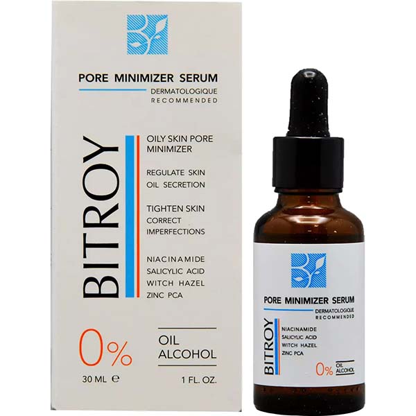 افرادی که پوست صورتشان چرب است در اکثر مواقع از باز و زیاد بودن منافذ احساس نارضایتی دارند و به دنبال راهی برای کاهش و جمع شدن این منافذ باز میگردند. منافذ باز پوست معمولا هنگام میکاپ و استفاده از محصولات آرایشی جلوه ناخوشایندی به پوست میدهد. به همین خاطر بهرهگیری از محصولات مراقبتی مخصوص مانند سرم مناسب پوست چرب قابض منافذ بیتروی، به رفع این مشکل و داشتن آرایشی زیباتر کمک شایانی مینماید. این محصول بافت سبکی دارد، به سرعت جذب پوست میشود و با دارا بودن سالیسیلیک اسید آن را به طور ملایم لایهبرداری میکند. سرم پوست چرب بیتروی حاوی زینک پی سی ای و ویتامینB3 بوده، به کنترل و تنظیم ترشح سبوم پوست کمک میکند و مانع ایجاد جوشهای سرسیاه و آکنه روی آن میشود. این محصول در کاهش و کوچک شدن منافذ باز پوست موثر عمل کرده و ظاهری صاف و یکدست بر روی آن ایجاد میکند. سرم کوچک کننده منافذ بیتروی فاقد الکل بوده و از بروز حساسیت روی پوست جلوگیری مینماید. زینک پیسی ای موجود در این سرم موجب آبرسانی و حفظ رطوبت پوست شده، در افزایش نرمی و لطافت آن و محافظت از پوست نقش بسزایی دارد.