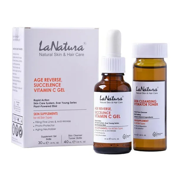 سرم ژل جوان کننده ویتامین C لاناتورا مدل Age Reverse به همراه تونر آبرسان حجم 30 میل