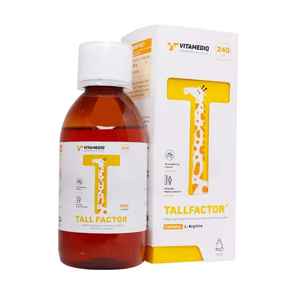 شربت تالفکتور ویتامدیک حاوی ۲۵۰ میلی گرم ال آرژنین در هر ۳ میلی لیتر به عنوان یک مکمل با کمک به افزایش ترشح هورمون رشد انسانی، نقش مهمی در افزایش قد و رشد کودکان دارد. این فرآورده همچنین در تقویت سیستم ایمنی و دفاعی بدن موثر است. ال آرژنین موجود در تالفکتور یکی از اسیدآمینههای ضروری بدن است که نقش اساسی در بهبود رشد کودکان دارد. همچنین این اسیدآمینه با استفاده از قندهای بدن، منبع انرژی لازم جهت رشد کودکان را فراهم مینماید. ال آرژنین در بسیاری از واکنشهای فیزیولوژیکی مرتبط با تکامل و عملکرد بدن انسان از جمله رشد استخوان و عضلات نقش اساسی دارد.
