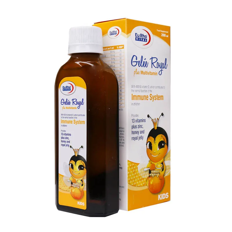 برای تقویت سیستم ایمنی کل افراد خانواده خود میتوانید از شربت ژل رویال پلاس مولتی ویتامین یوروویتال استفاده کنید؛ البته اگر کودک زیر ۴ سال در منزل نداشته باشید. کودکان ۴ سال به بالا، نوجوانان و بزرگسالان روزانه ۵ میلیلیتر از این محصول را باید مصرف کنند تا سلامت عمومی بدن خود را ارتقا بخشند. بهتر است این شربت را در کنار وعده غذایی خود میل کنید. رویال ژلی و عسل از ترکیبات مغذی به کار رفته در این مکمل هستند. تقریبا همه ویتامینهای مورد نیاز بدن (۱۳ ویتامین) و همچنین عنصر زینک در این محصول وجود دارند. این مولتی ویتامین میتواند در بهبود اشتها نیز موثر بوده و برای رشد جسمی و ذهنی کودکان و نوجوانان مطلوب باشد. همچنین برای حفظ سلامت پوست، مو و ناخن نیز این محصول کارایی دارد. می توان گفت این محصول بهترین شربت تقویت سیستم ایمنی بدن کودکان است.