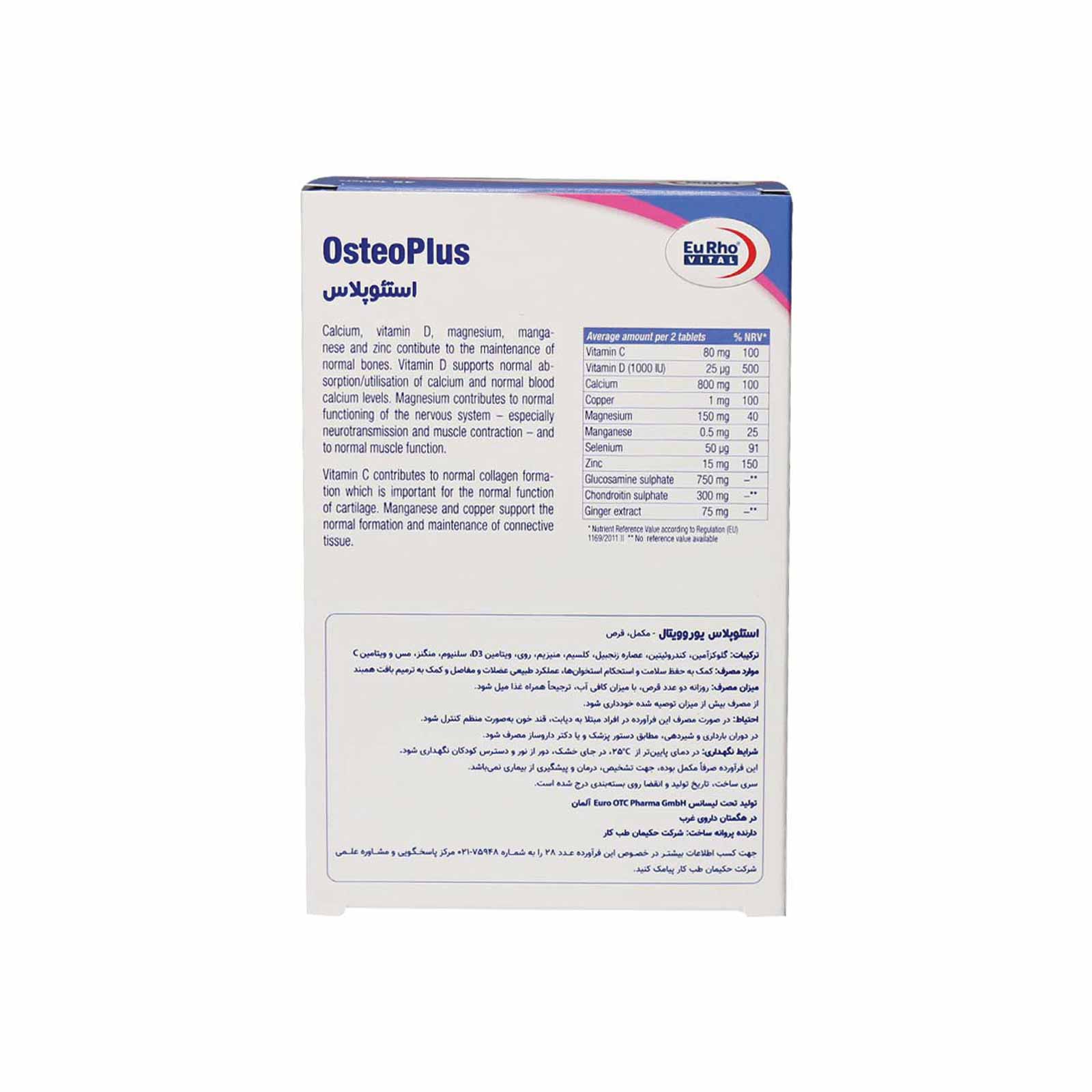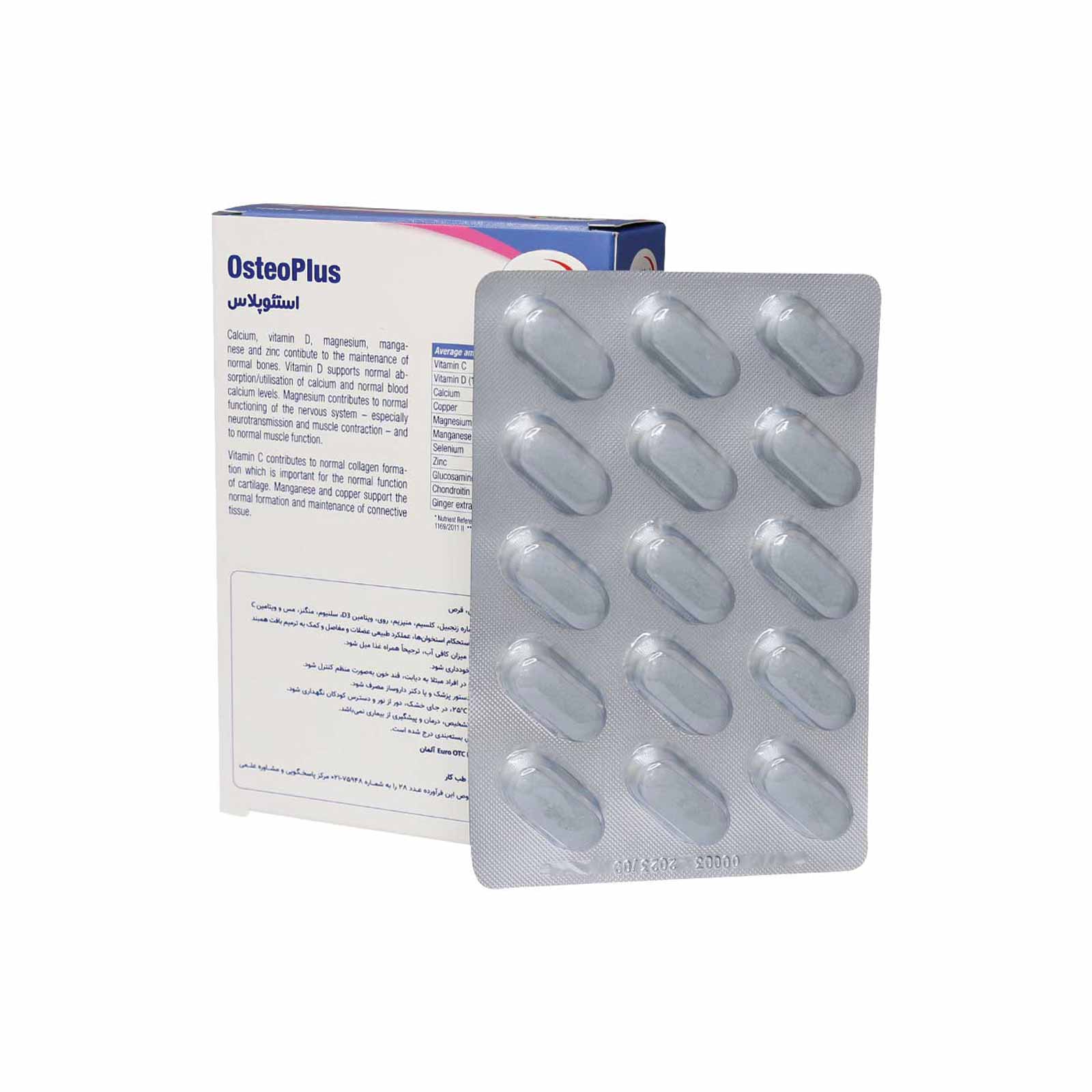 قرص استئوپلاس یوروویتال حاوی عصاره زنجبیل، گلوکزآمین، کندرویتین سولفات، ویتامینها و مواد معدنی میباشد که در حفظ و سلامت استخوانها و مفاصل، پیشگیری از پوکی استخوان موثر میباشد در ادامه به بررسی ترکیبات این مکمل میپردازیم: