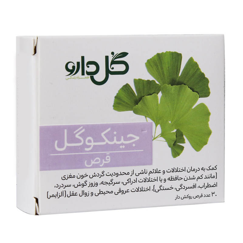 قرص جینکوگل گل دارو در درمان کم شدن حافظه و یا اختلالات ادراکی، سرگیجه، وزوز گوش، سردرد، اضطراب، افسردگی و خستگی، اختلالات و علائم ناشی از محدودیت گردش خون مغزی و… موثر است. همچنین قرص تقویت حافظه بهبود اختلالات عروقی محیطی ، زوال عقل (آلزایمر) را هم به همراه دارد. برگ جینکوبیلوبا حاوی فلاونوئیدها، پروآنتوسیانیدینها، دی ترپنهای لاکتونیک و سزکوئی ترپنهای تریلاکتونیک است. سه فلاونوئید عمده عبارتند از: کوئرستین، کامپفرول و ایزورهامنتین. مکانیسمهای اثر گوناگونی، فعالیت فارماکولوژیکی عصاره جینکگوبیلوبا مانند تحریک آزاد شدن NO/EDRFو PGI۲ و فعالیت ضد اکسیدان، اثر آنتاگونیستی PAF و افزایش آزاد شدن واسطههای شیمیایی و وقفه جذب آمینهای بیوژنیک را به مرحله ظهور میرساند.