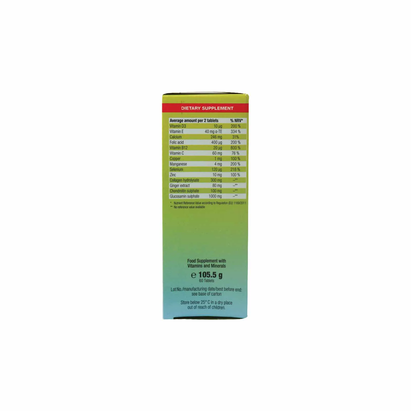 روی (زینک), سلنیوم, کلاژن, کلسیم, کندرویتین, گلوکوزامین, مس, منگنز |