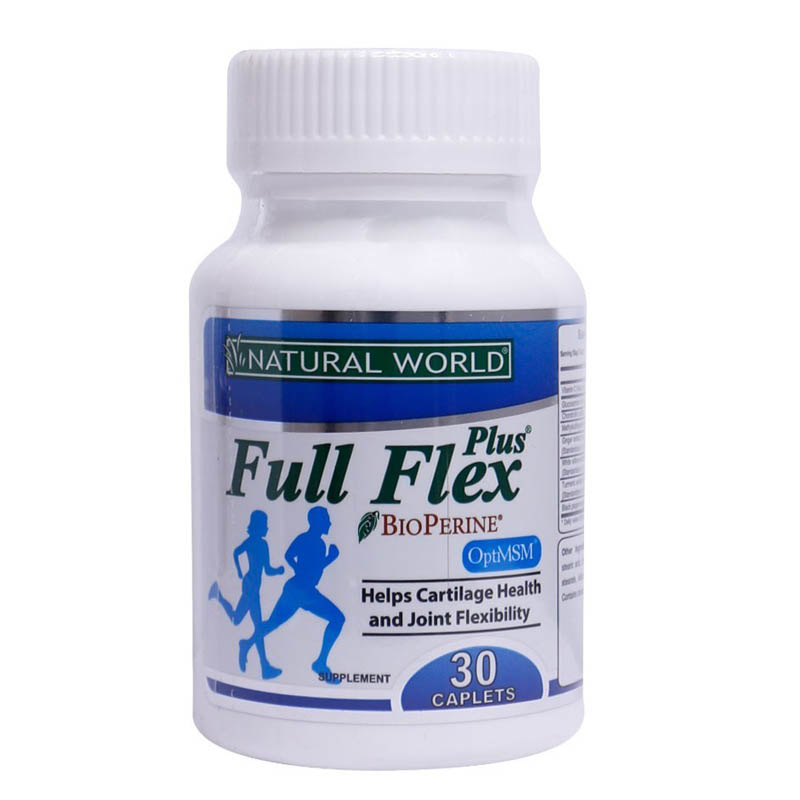 قرص فول فلکس پلاس نچرال ورلد، حاوی 3 ماده موثر در حفظ و تقویت سلامت مفاصل و غضروف ها شامل گلوکز آمین هیدروکلراید، کندرویتین سولفات و متیل سولفونیل متان می باشد.