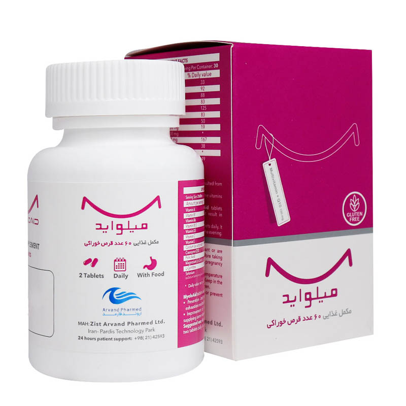 قرص میلواید حاوی مجموعه ای از ریزمغذی های ضروری بوده و توسط شرکت زیست اروند فارمد تولید شده است. میلواید به فرم دارویی قرص و در قوطی های 60 عددی بسته بندی شده است.