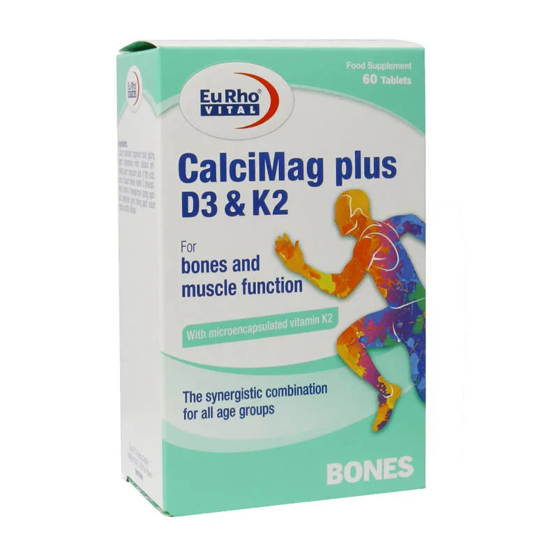 قرص کلسی مگ پلاس D۳ و K۲ یوروویتال ترکیبی کامل و متعادل از چهار ماده مغذی مهم جهت حفظ سلامت استخوانها است. کلسیم، منیزیم و ویتامین k۲ در حفظ سلامت استخوانها نقش دارند. ویتامین دی به کار رفته در این قرص نیز جذب کلسیم و حفظ سطح طبیعی آن در بدن را بهبود میبخشد. کمبود این ویتامین منجر به نرمی استخوان، پوسیدگی دندان، ضعف عضلانی، کاهش جذب مواد معدنی و پیری زودرس میشود. مصرف این مکمل جهت بهبود عملکرد طبیعی قلب و سیستم عصبی، انقباض عضلات و انعقاد خون نیز به شدت توصیه میشود. ناگفته نماند منیزیم قرص calcimag باعث سلامت عضلات و استخوانها شده و علاوه بر آن تولید و ساخت کافی پروتئینهای ضروری را بر عهده دارد.