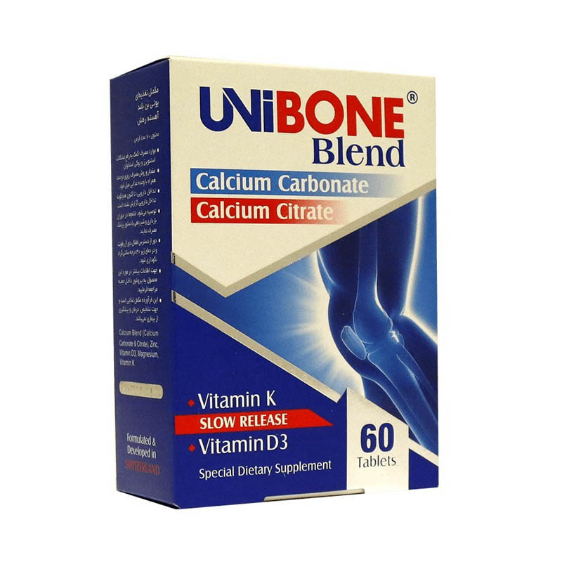 - unibone حاوی ویتامین D3، منیزیم، زینک و ویتامین K برای کمک به افزایش تراکم استخوان