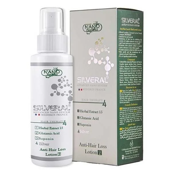- لوسیون ضد ریزش موی گیاهی سیلورال Silveral با استفاده از ترکیبات ذرات نقره، با فناوری خاصی تولید شده است، یکی از این فناوری ها بکارگیری ریز ذرات در داروسازی موضعی است که مزایای آن: