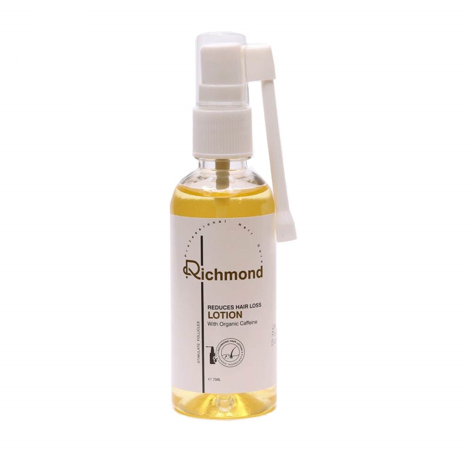 محلول ضد ریزش و مکمل رویش مو ریچموند (Richmond) دارای بافت سبک ، غیر چرب (برای پوست سر چرب و خشک) مناسب است. لوسیون ضد ریزش ریچموند دارای قابلیت جذب سریع می باشد. از مزایای دیگر این محلول تحریک و تغذیه فولیکول مو ، افزایش دوره آناژن (فاز رشد) و کاهش زمان استراحت مو (فاز تلوژن) است. مهار ریزش موها با مهار آنزیم 5 آلفاردوکتاز صورت می گیرد. محلول ضد ریزش ریچموند با ترکیبات غنی از روغن سویای هیدرولیز شده ، کافئین ارگانیک، اسیدهای چرب و با اثر آنتی اکسیدانی ، موجب مهار آنزیم 5 آلفا ردوکتاز می شود. محلول ضد ریزش و مکمل رویش مو ریچموند موثر در انواع ریزش مو و محرک رشد سلولها از طریق هماهنگی و بهبود متابولیسم سلول های سازنده فولیکول مو می باشد