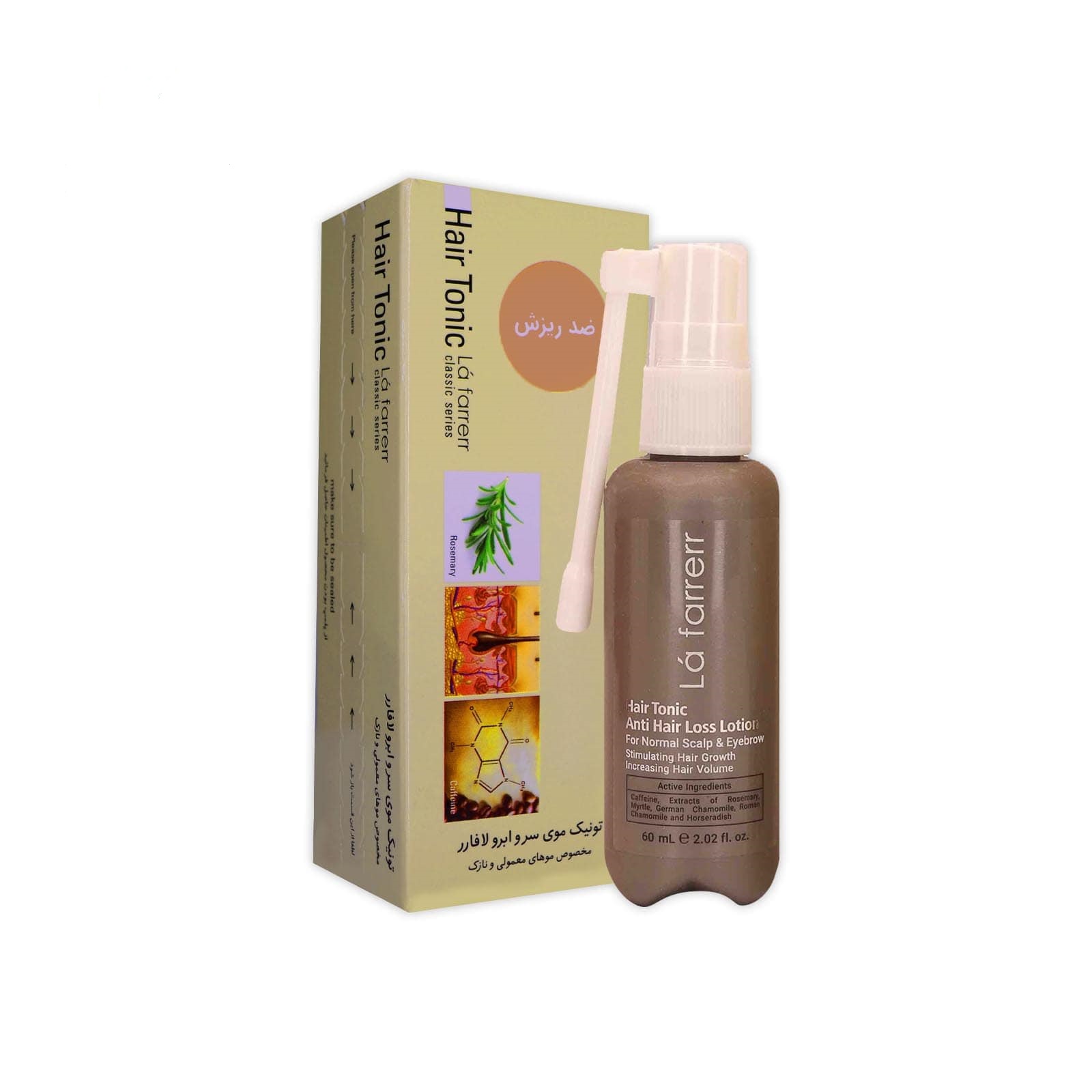 پس از شستشو و خشک کردن نسبی تارهای مو، زمانی که هنوز رطوبت مختصری روی تارهای مو باقی مانده، تونیک لافارر را بر موضع دچار ریزش ۷ مرتبه پاف نمایید و با نوک انگشتان به نرمی و به صورت دورانی ماساژ دهید تا خوب جذب گردد. طریقه مصرف برای ابرو بر روی هر ابرو یک مرتبه پاف شود و از ماساژ اجتناب شود.