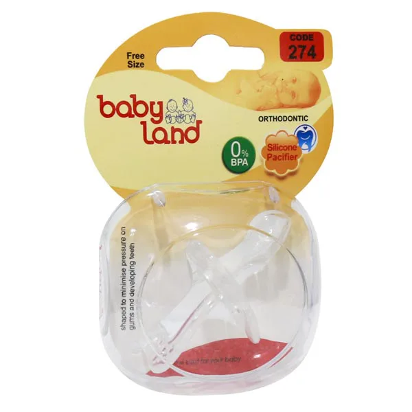 پستانک ارتودنسی بیبی لند تهیه شده از مواد کاملا بهداشتی و طراحی شده بر اساس شکل طبیعی کام و لثه کودک است و مانع از تغییر فرم بینی کودک میشود. این پستانک از جنس سیلیکون خالص و بی ضرر برای سلامت کودک است.