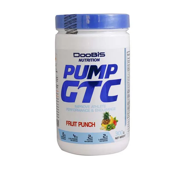 پودر پمپ جی تی سی دوبیس حاوی کربوهیدرات، فیبر، ویتامین د۳، تیامین، نیاسین، ویتامین ب۶، ب۱۲ و سی بوده که در کنار کراتین، تائورین، ال-گلوتامین و ال-آرژنین یک مکمل عالی جهت تامین انرژی قبل از تمرینات لقب گرفته است. مصرف این پودر پمپ افزایش استقامت و عملکرد ورزشکار، تحریک تولید هورمون رشد، به تاخیر انداختن خستگی و افزایش انرژی را در پی دارد.