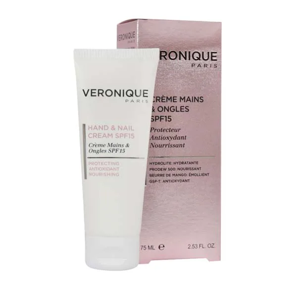 کرم دست و ناخن SPF۱۵ ورونیک حاوی عصاره هسته انگور، روغن جوجوبا، عصاره آلوئه ورا، روغن ماکادمیا، موم زنبور عسل و روغن آووکادو است. عصاره هسته انگور موجود در این کرم، از پوست در برابر اشعه ماورابنفش محافظت نموده و مانع از پیری زودرس سلولهای پوستی میشود. این عصاره خطر ابتلا به سرطان پوست را به طرز چشمگیری کاهش میدهد و اثرات مخرب رادیکالهای آزاد را خنثی میکند. روغن جوجوبا نیز حاوی مقدار قابل توجهی از سرامیدها است و به این واسطه پوست را نرم و مرطوب نگه میدارد. این روغن خاصیت ضد التهابی نیز دارد و علائم بیماریهایی همچون اگزما و پسوریازیس را کاهش میدهد. همچنین عصاره آلوئه ورا به ترمیم بافت آسیب دیده پوست میپردازد و سوختگیهای سطحی را درمان میکند.
