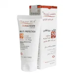کرم ضد آفتاب مولتی پروتکشن ⁺SPF۵۰ دکتر ژیلا فاقد چربی بوده و با بهره گیری از عصاره های گیاهی مختلف، علاوه بر محافظت از پوست در برابر اشعه های مضر خورشید، از پیری زودرس پوست نیز جلوگیری می کند.