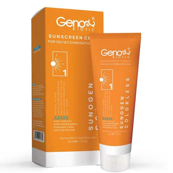 کرم ضد آفتاب مخصوص پوست¬های چرب ژنوبایوتیک، با دارا بودن فیلترهای UV و همچنین مواد موثره گیاهی، نقش موثری در مهار اثرات مضر پرتوهای UVA و UVB دارد. بافت این کرم برای پوست های چرب طراحی شده، که علاوه بر ایجاد پوشش کامل بر روی پوست، فاقد چربی بوده و با دارا بودن بافت سبک، مانع از انسداد پوستی و تشکیل آکنه می شود.