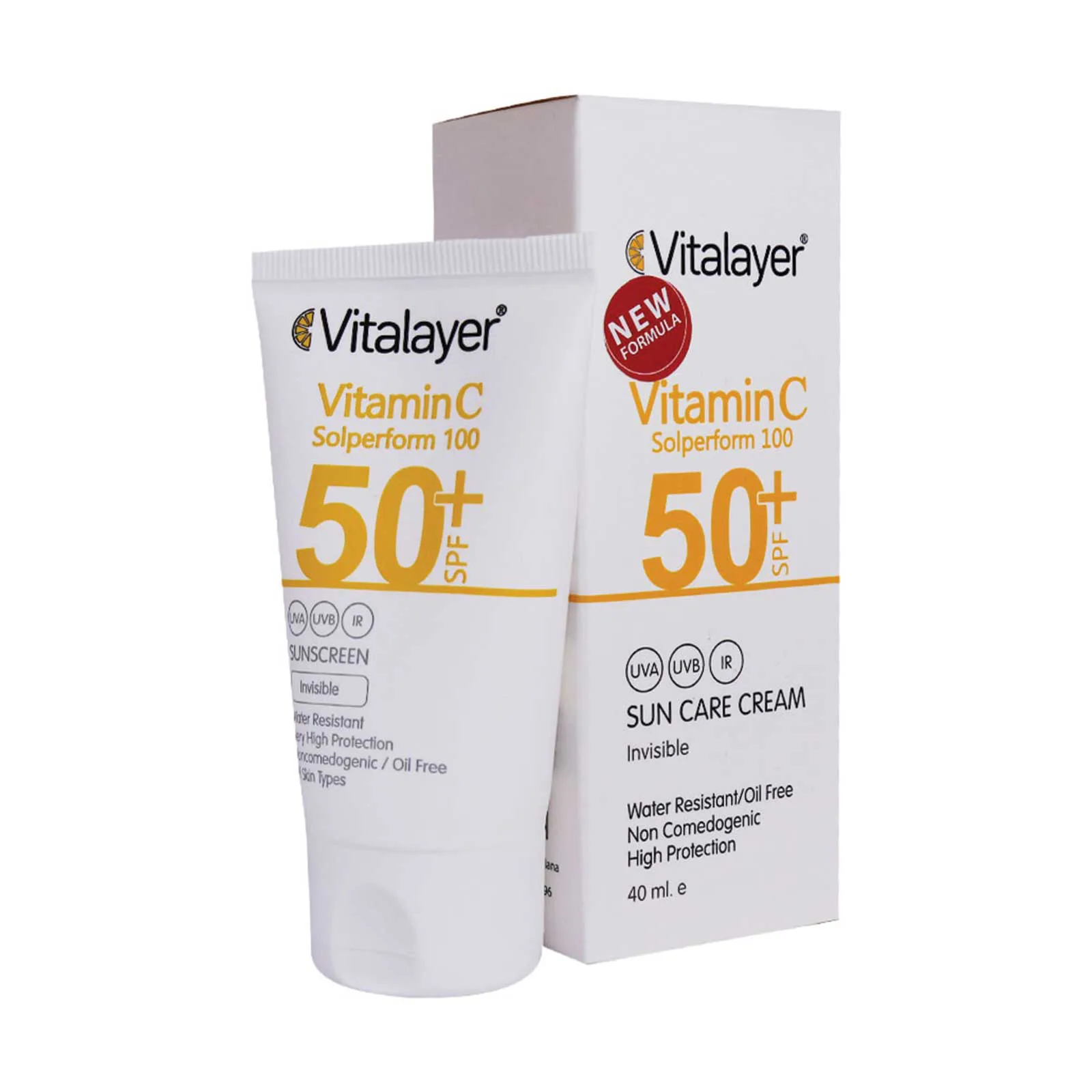 کرم ضد آفتاب SPF50+ حاوی ویتامین C ویتالیر بی رنگ 40 میلی لیتر