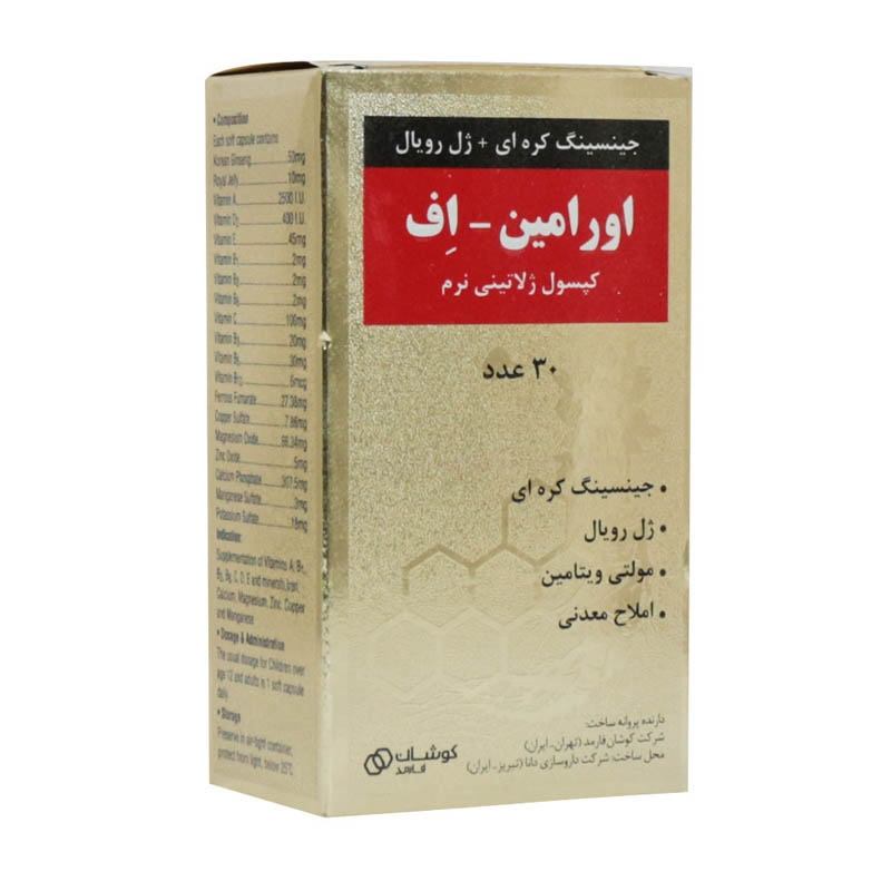 اورامین اف یکی از مکمل های مولتی ویتامینی است که حاوی ترکیبی نسبتا کامل از ویتامین ها و املاح به علاوه عصاره جینسینگ و رویال ژلی می باشد.