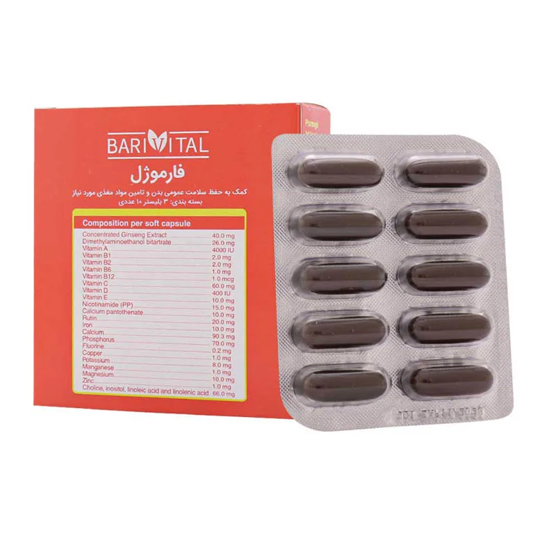 کمبود ویتامینها و مواد معدنی در افراد بزرگسال و مسن بنا به دلایل مختلفی مانند تغییرات در سبک زندگی، فعالیت بدنی کم، بیماریها و … اتفاق میافتد که با مصرف قرص مولتی ویتامین مینرال میتوان کمبود آنها را در بدن جبران کرد. کپسول فارموژل باریویتال حاوی عصاره جینسینگ با غلظت بالا و مجموعه ای از ویتامینها و عناصر کمیاب است که جهت پیشگیری از کمبود ویتامین در بدن بسیار مفید عمل مینماید. این محصول میتواند به پیشگیری از کمبود ویتامین کمک کند و همچنین با پیشرفت سن، میتواند به کاهش تدریجی قدرت جسمی و جنسی کمک نموده و از فرسودگی ذهنی نیز جلوگیری کند.