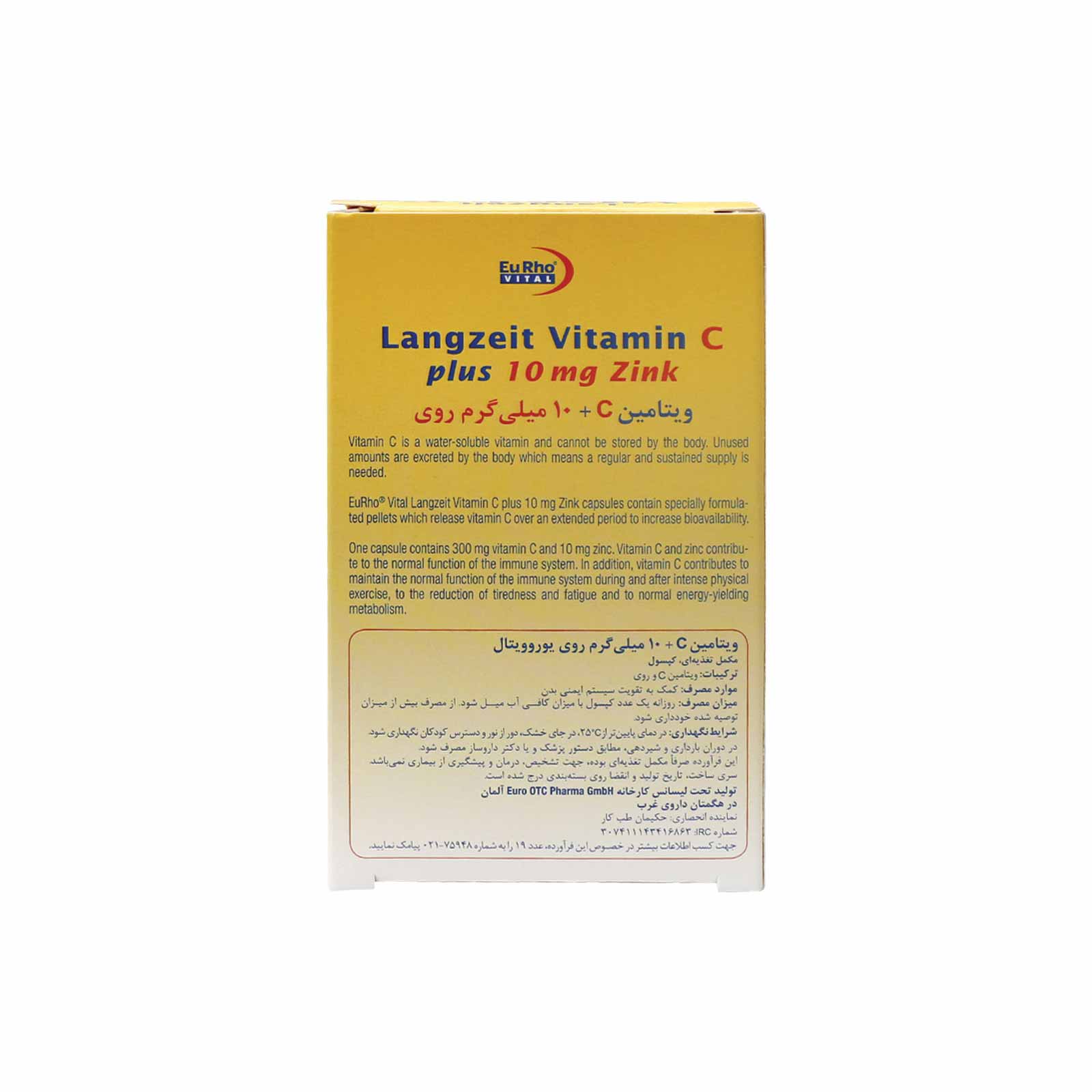 کپسول را دور از دسترس اطفال، دور از نور و در جای خنک و نگهداری شود. این فرآورده جهت تشخیص، درمان و یا پیشگیری از بیماری نیست. در دمای کمتر از ۲۵ درجه سانتی گراد نگهداری شود. در صورت بارداری و یا شیردهی، قبل از مصرف کپسول ویتامین C و زینک (۱۰ میلی گرم) یورو ویتال با پزشک خود مشورت نمایید. در صورت مصرف در مقدار توصیه شده، معمولا عارضه جانبی خاصی برای شما نخواهد داشت. در صورت ابتلا به بیماریهای مزمن یا مصرف داروهای خاص، قبل از مصرف این فرآورده با پزشک یا داروساز مشورت کنید.
