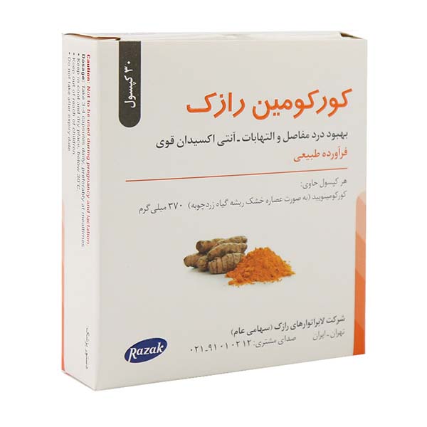 شرکت سهامی لابراتوارهای رازک که به عنوان یکی از پیشگامان صنعت داروسازی در ایران شناخته میشود، محصولی به نام کپسول کورکومین رازک را با استفاده از عصاره خشک ریشه گیاه زردچوبه تهیه کرده است. این مکمل گیاهی جهت کمک به بهبود درد و التهاب مفاصل استفاده میشود.