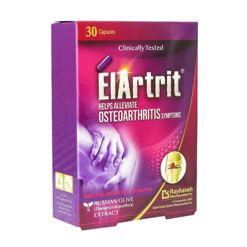 - Elartrit کپسول خوراکی گیاهی حاوی 250 میلی گرم عصاره فرآوری شده سنجد